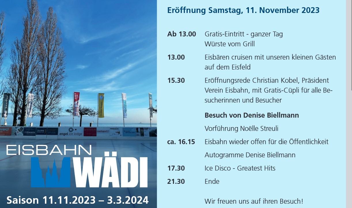 Denn morn wird wieder d Iisbahn igweiht. Fürs libliche Wohl wird au gsorgt und Prominenz isch au vor Ort.